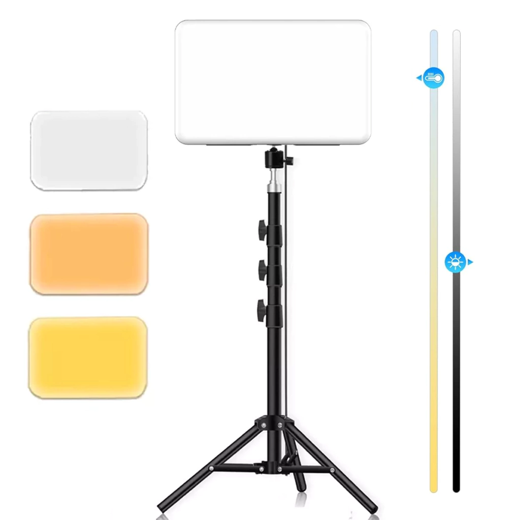 Trípode Incluido: Incluye un trípode robusto y estable, capaz de alcanzar una altura máxima de 2.1 metros. Este trípode es regulable en altura, permitiéndote ajustar la posición del panel LED a la altura deseada con facilidad, brindando flexibilidad para diferentes tipos de tomas y configuraciones de iluminación.